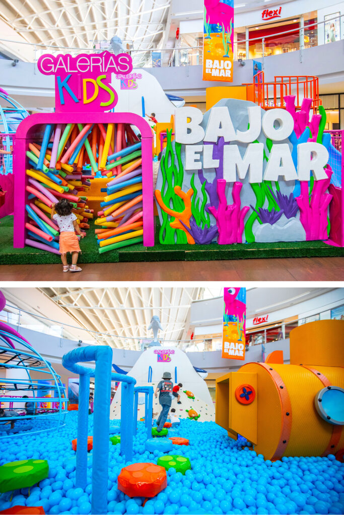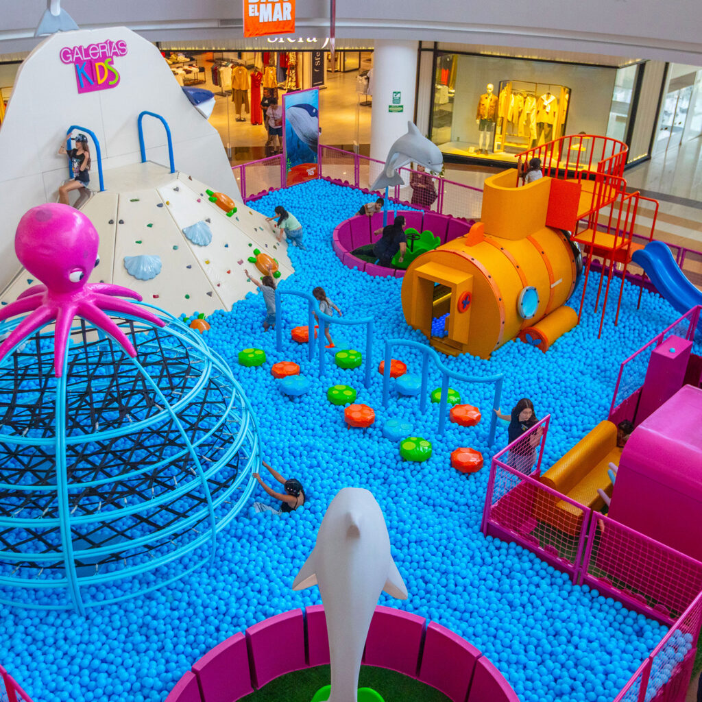 Sumergirse en el mar nunca fue tan divertido en Galerías Vallarta. Los más pequeños de la familia podrán divertirse con las criaturas más coloridas del océano. Podrán lanzarse a una alberca de pelotas, escalar por la guarida de un divertido Pulpo y dejar volar su imaginación con delfines.