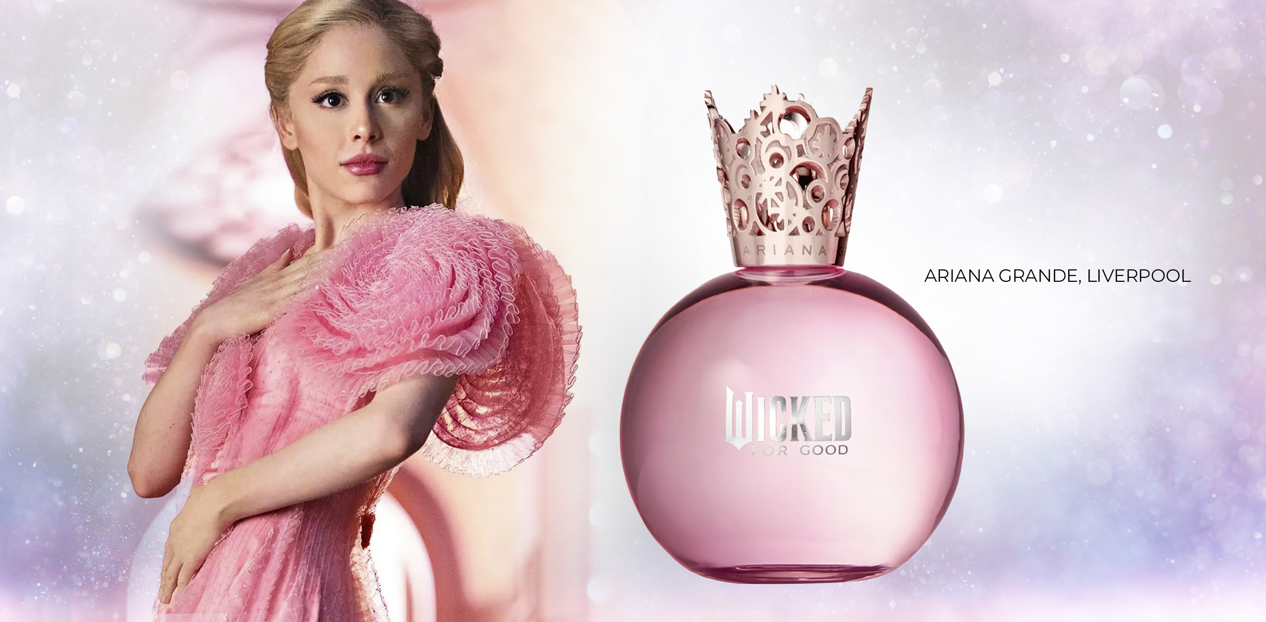Dale un plus a tus oufits con el accesorio invisible imprescindible de la temporada: el perfume Ariana Grande Wicked inspirado en la burbuja rosa flotante de Glinda. La fragancia es descrita como sofisticada, burbujeante y encantadora. Su diseño con una hermosa corona como tapa la hace única y exclusiva. Consíguela en Liverpool.