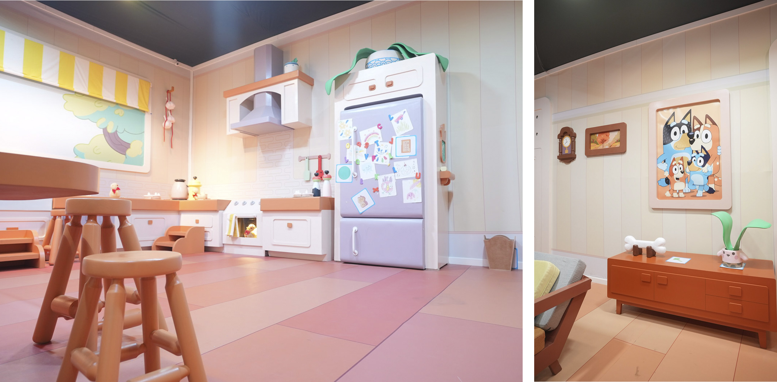 Termina la función, se abren las puertas e inmediatamente un aroma a flores y frutas se desprende y los colores vibrantes de la enorme casa de Bluey aparecen para comenzar a ser recorrida.