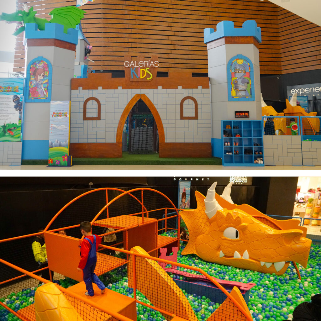 Galerías Toluca celebra el mes más divertido con el área de juegos Princesas y Dragones, donde los niños y las niñas podrán imaginar su cuento más divertido con una torre, una princesa, caballeros y dragones, todo con puentes colgantes, toboganes y alberca de pelotas.