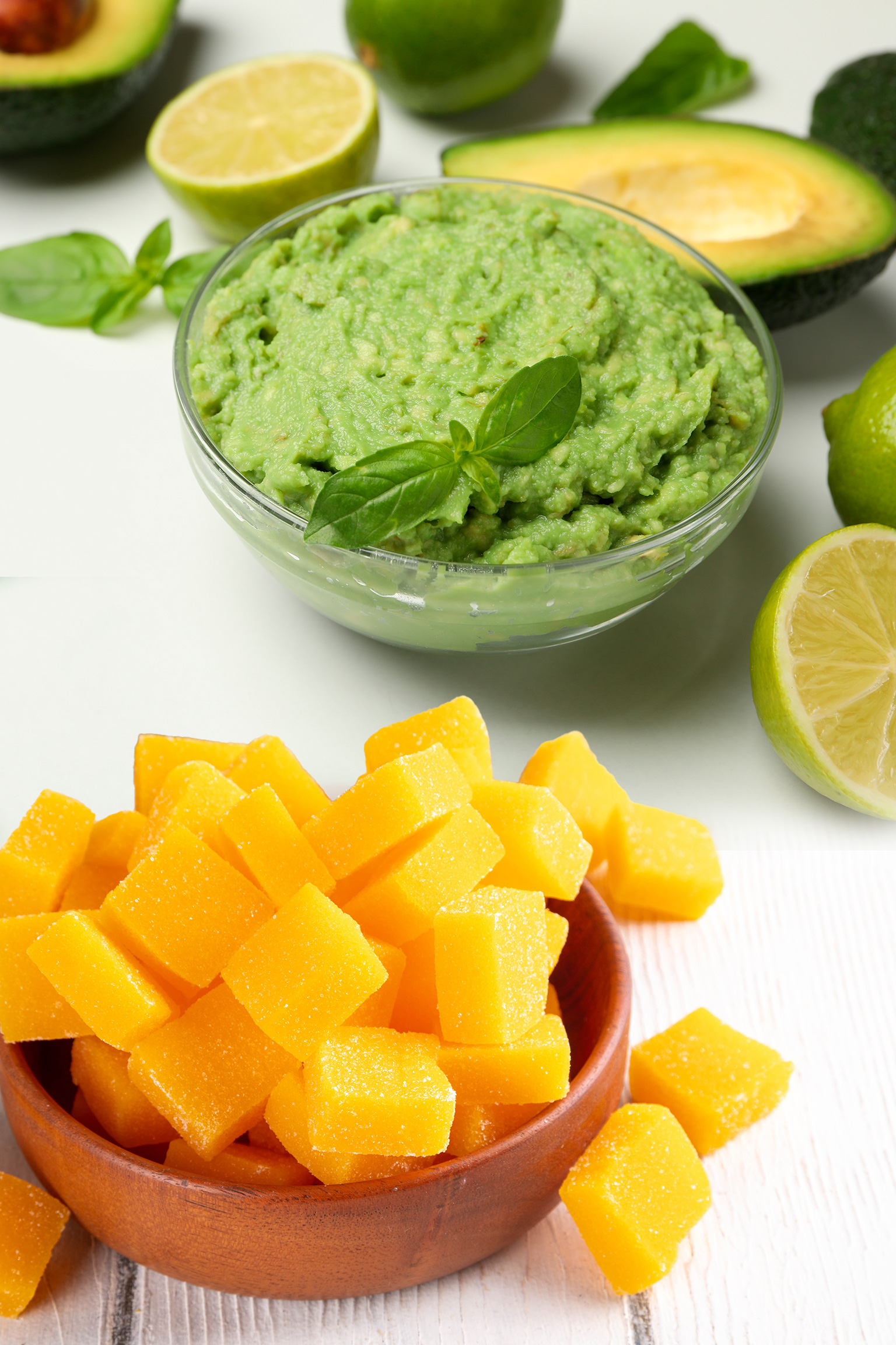 7. Sirve el atún caliente, acompaña con la salsa de aguacate y termina con la ensalada fresca de mango para equilibrar el plato. Puedes acompañar con tostadas o tortillas.