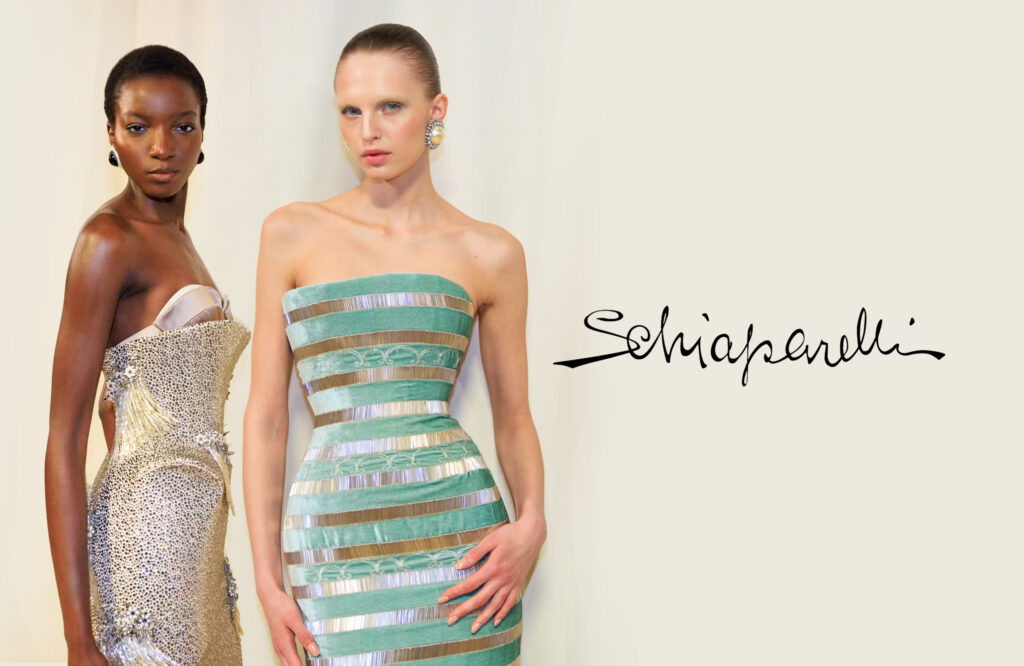 Gucci también rinde homenaje a las hombreras con un diseño de abrigo con estampado de rizo en color verde oscuro que combina con top de cuello envuelto en rosa pastel.