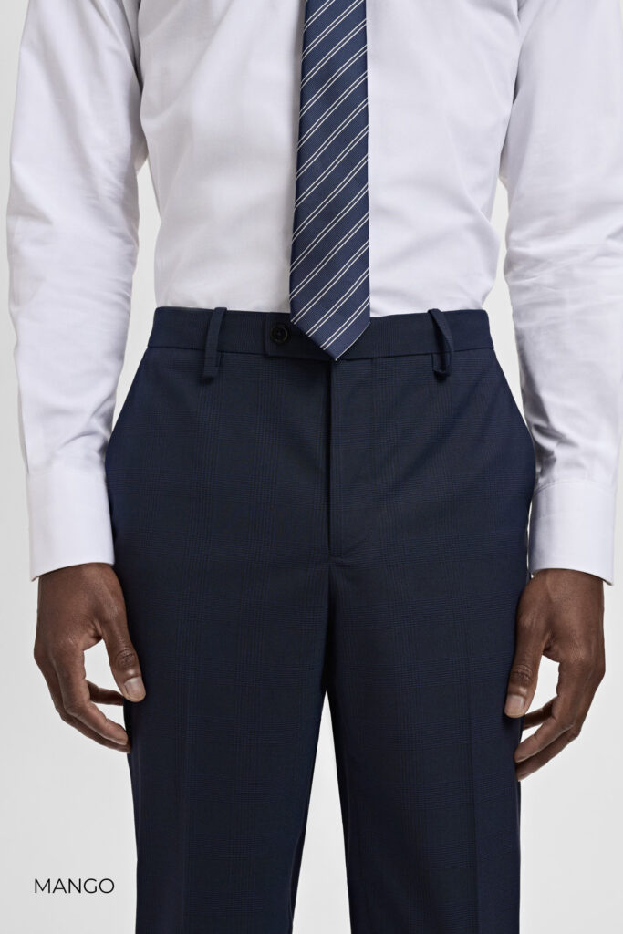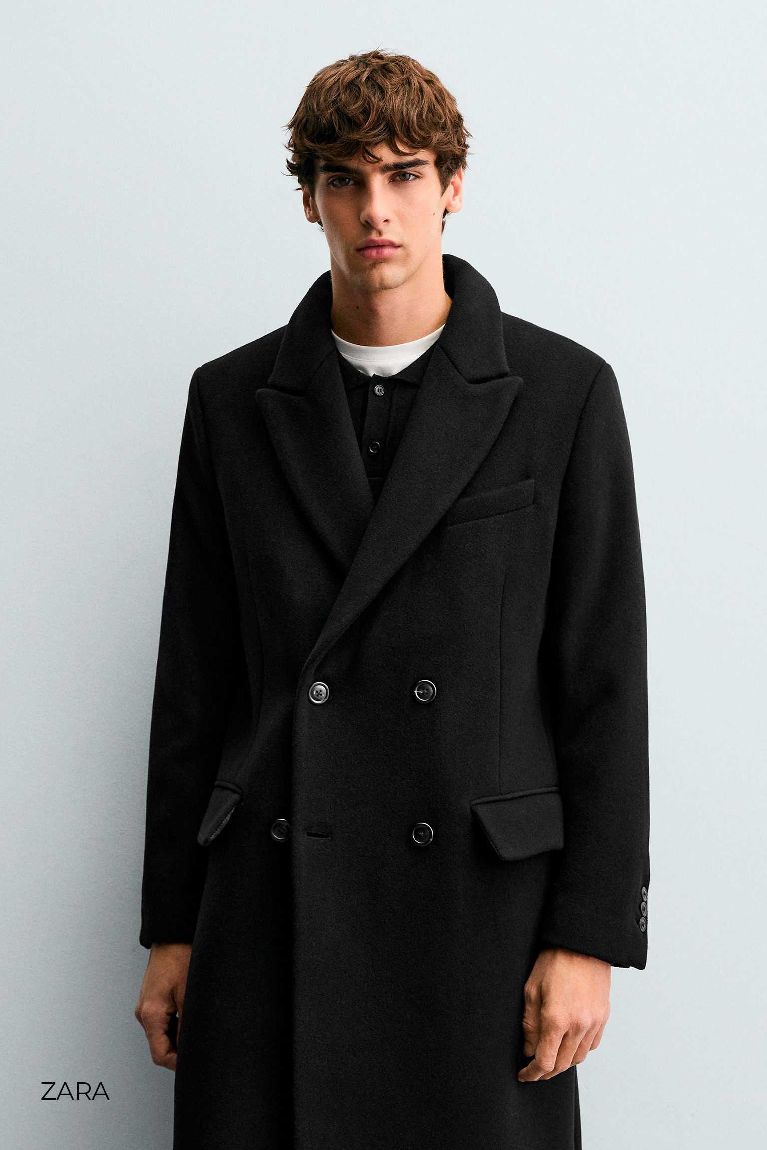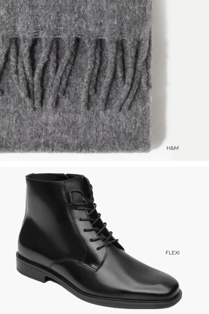 Viste impecable en la cena navideña con el abrigo sastre cruzado con hombros marcados en mezcla de lana negra y solapas pico de Zara. Para la parte de abajo, utiliza el pantalón de traje en azul marino oscuro de Mango. Como calzado, usa el botín liso negro con cierre de cordones de Flexi y la suave bufanda con flecos en color gris como accesorio de H&M.