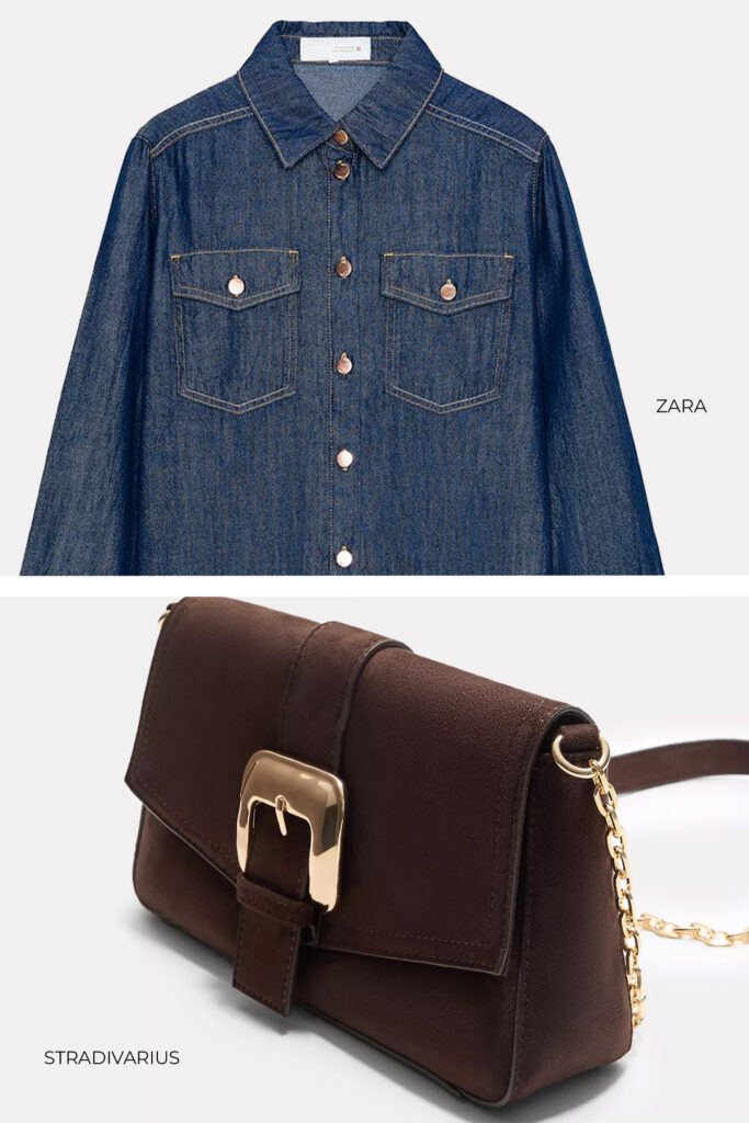 Para tus looks del día a día, agrega a tu armario el modelo corto con estampado de leopardo de C&A, perfecto para un juego de texturas con la camisa denim con bolsillos frontales en azul de Zara. Para la parte baja, utiliza el pantalón de cuero negro de Bershka. Como calzado, te sugerimos los mocasines negros con detalle antifaz y frunces en empeine de Lefties. Finaliza con el bolso bandolera de efecto ante marrón con detalle de hebilla desigual de Stradivarius.