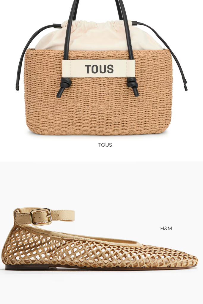 Para esos días casuales recurre a una versión denim como el diseño baggy en azul lavado de Bershka. Compleméntala con el chaleco en tejido de punto negro de Massimo Dutti. Para el calzado usa las frescas bailarinas de piel calada con cierre de pulsera de H&M y remata con el bolso de ratán con asa negra de Tous.