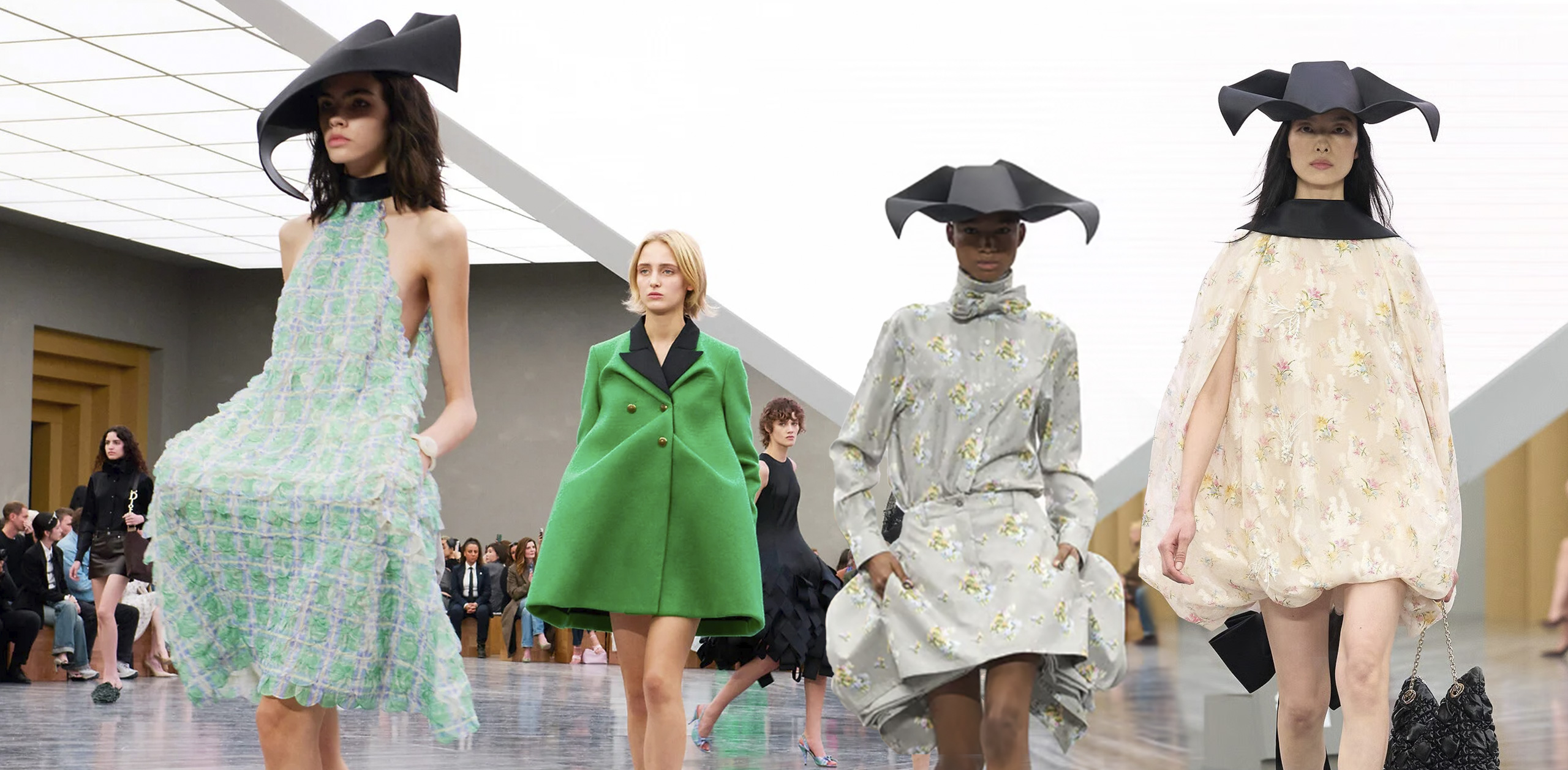 Si bien esta colección fue una de las más esperadas por toda lo que engloba, es necesario resaltar las aportaciones que hace a las tendencias que sí bajarán al street style como las flores 3D y detalles botánicos que conviven perfecto con la atmósfera de la primavera, las siluetas globo y campana que se verán mucho en vestidos y faldas, y los atrevidos drapeados que aportan mucho movimiento.