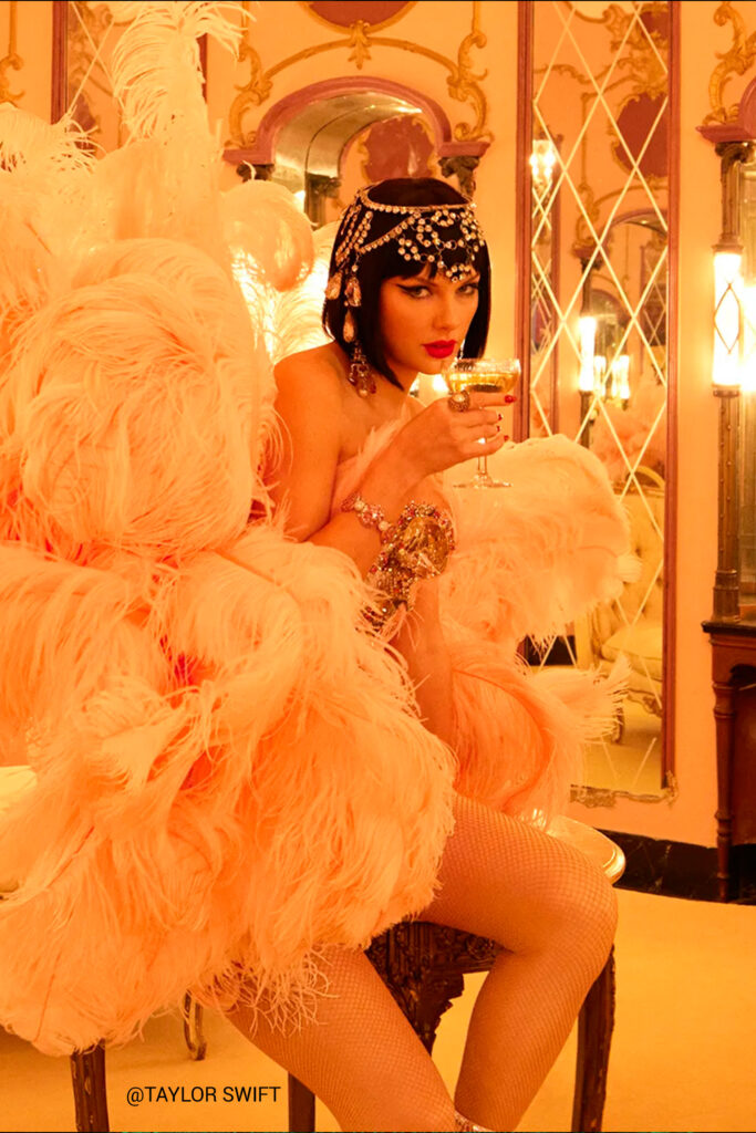 La inspiración o el concepto que Swift aborda en esta nueva era viene del estilo de vida de la escena del cabaret, estética que surge en París a finales del siglo XIX en lugares emblemáticos como Le Chat Noir, donde la música y el arte convivían en un ambiente de total entretenimiento. Quienes se presentaban en estos recintos eran las famosas vedettes, las estrellas del espectáculo cuyos vestuarios, inspirados en estructuras del art déco, destacaban por su teatralidad: plumas, abanicos, guantes de lentejuela, tacones altos y joyería llamativa como aretes, collares y brazaletes de gran tamaño. A esto se le sumaban pelucas y tocados extravagantes que aportaban dramatismo y sensualidad en el escenario.