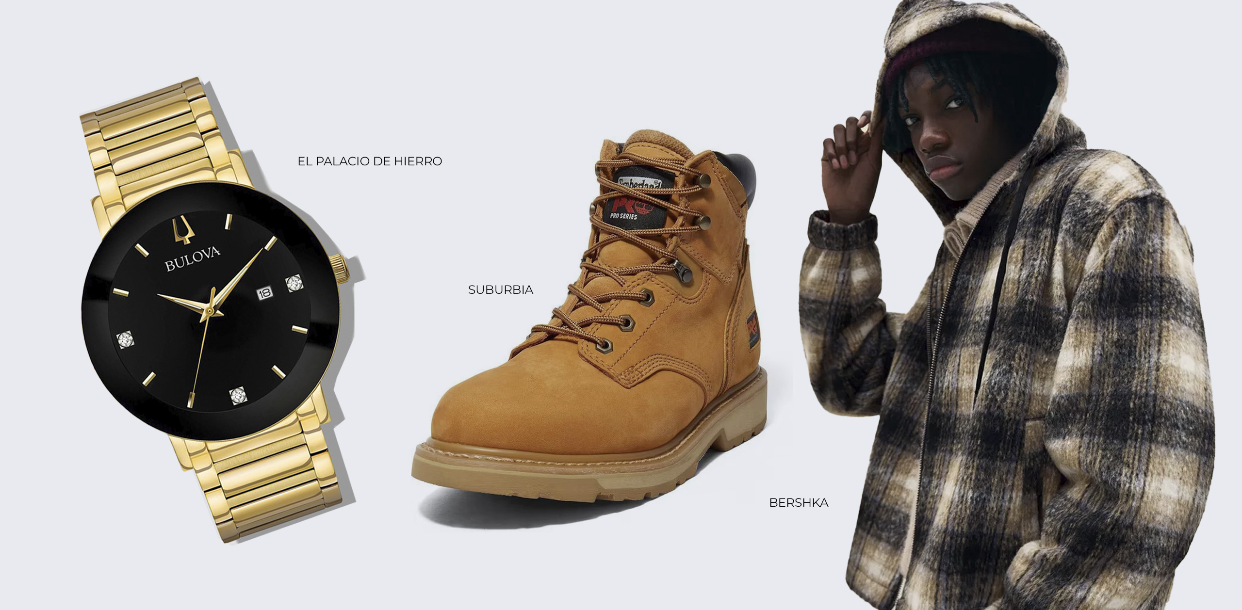 Para replicar esta estética, crea una propuesta urbana con la cazadora a cuadros con capucha y textura tweed de Bershka para la parte de arriba, combinada con las botas Timberland Pro en tono camello disponibles en Suburbia. Completa el look con el reloj Bulova Futuro que encuentras en El Palacio de Hierro.