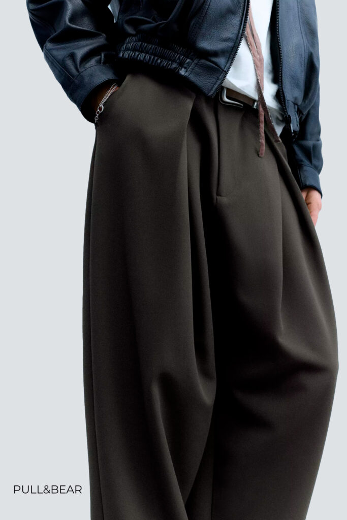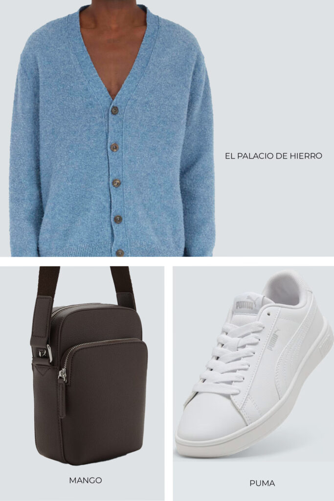 Otra forma para seguir el estilo del protagonista de Cumbres borrascosas es con el pantalón gris oscuro de corte holgado de Pull&Bear junto con el cárdigan de cuello en V de Maison Margiela en el tono azul grisáceo, disponible en El Palacio del Hierro. De calzado utiliza los tenis Rickie Classic de Puma. Complementa el conjunto con la bolsa bandolera en color café de Mango.