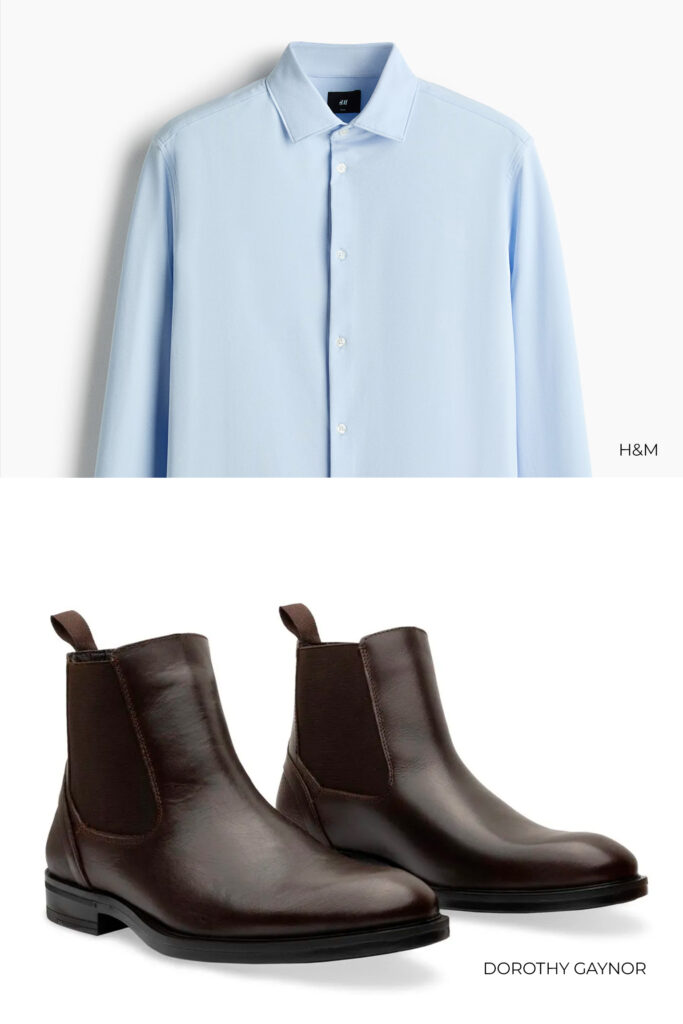 Suma este versátil suéter a tus atuendos de oficina como el de Massimo Dutti en tono granate con cuello redondo. Es perfecto para llevar sobre la camisa de vestir slim en azul claro de H&M. Por debajo te recomendamos usar los cálidos pantalones de pana en color crudo de Mango. Para el calzado utiliza los botines chelsea liso en tono café con detalle elástico en los laterales de Dorothy Gaynor. Finalmente, remata con la americana de traje color zafé de Zara.