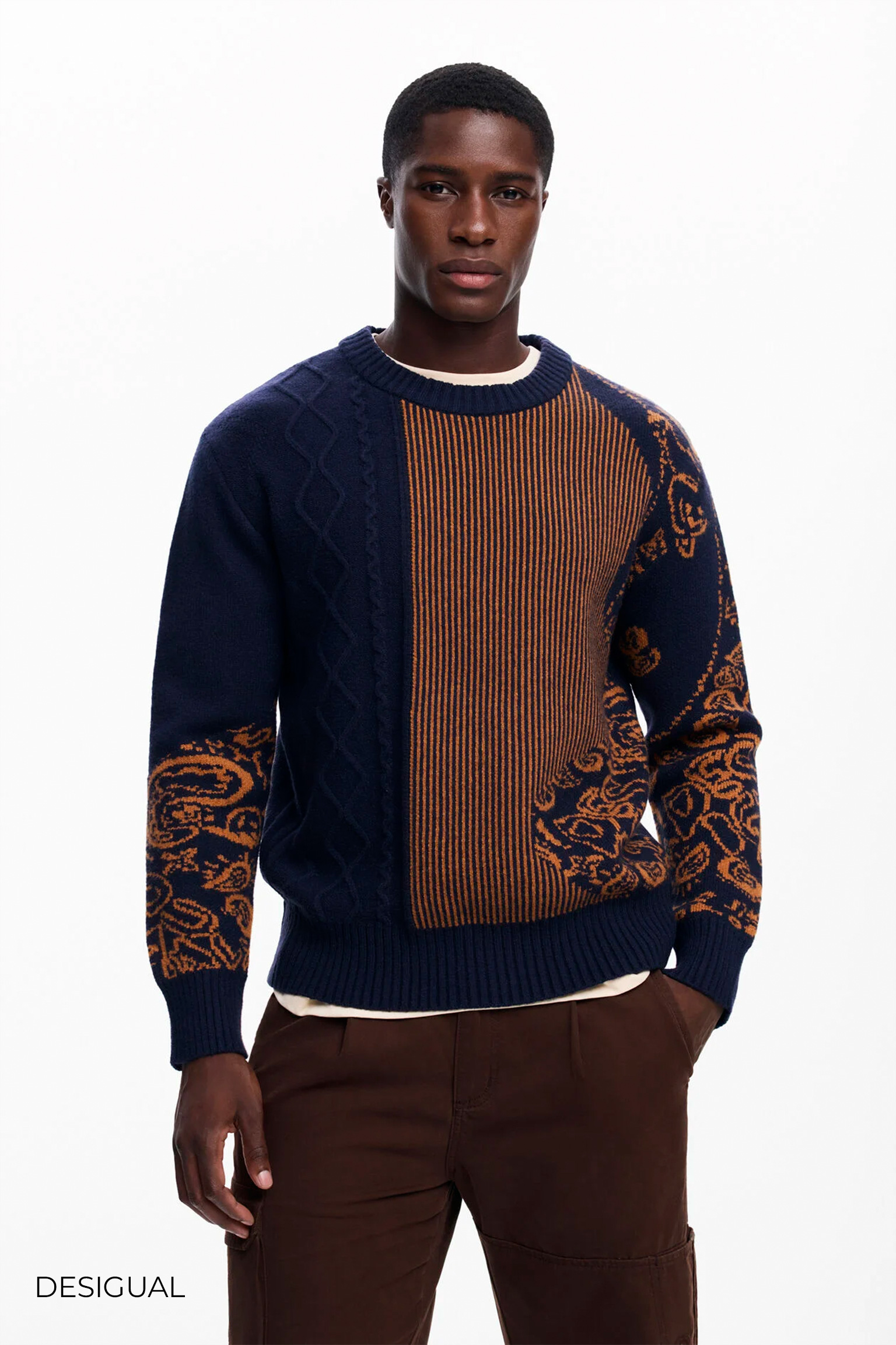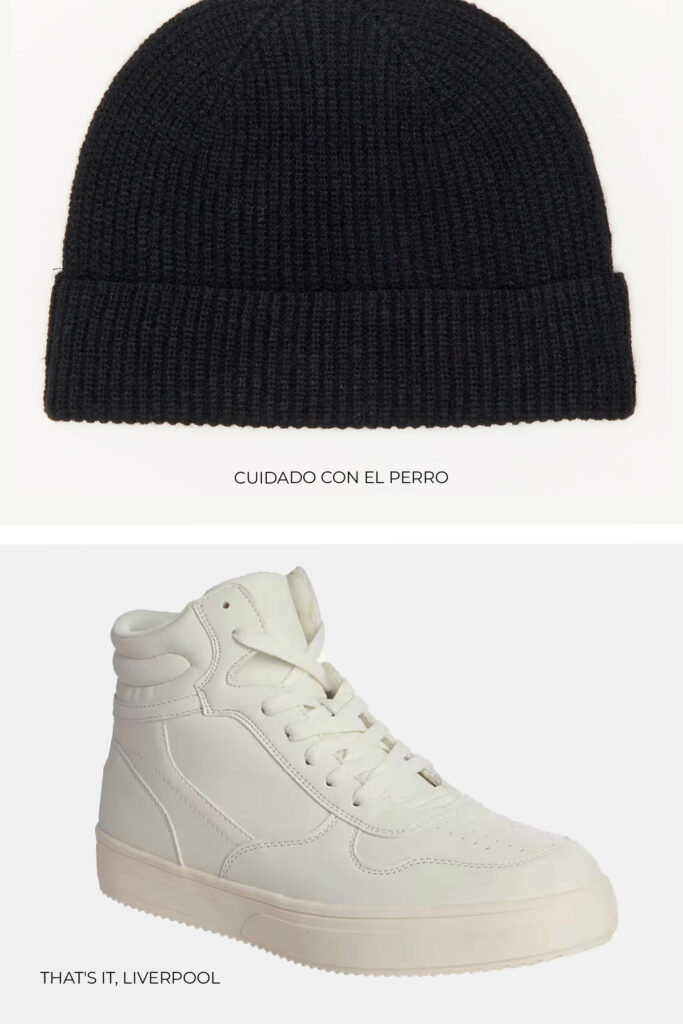 Comienza el año cómodo en tus looks casuales (pero siempre sofisticado) con el modelo confeccionado trenzado y estampado estilo paisley de Desigual. Compleméntalo con el pantalón cargo negro con cintura y bajos elásticos de Pull&Bear. Para tus pies, calza las zapatillas tipo botín en tono blanco That’s It, disponibles en Liverpool, y el gorro de punto negro de Cuidado con el Perro.