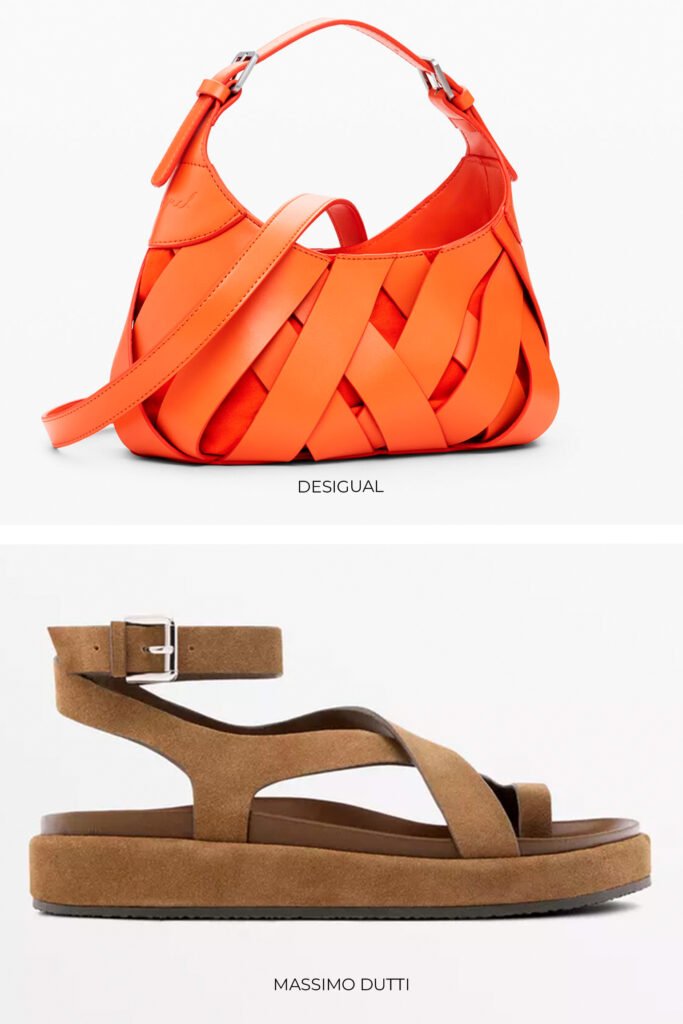 Para estilos más desenfadados, Miu Miu suma un jersey naranja que mezcla con un vestido estampado. Lacoste también propone el jersey de punto llevándolo con pantalones anchos en estilo monocolor. Si solo buscas toques de este tono, los accesorios son tu mejor aliado: bolsos, zapatos y guantes (vistos en Hermès, Ferragamo, Loewe y Prada).