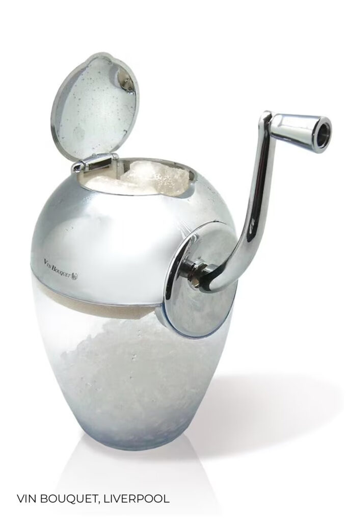 Si no quieres electrodomésticos pesados y grandes, te recomendamos la pequeña trituradora de hielo Vin Bouquet de venta en Liverpool. Es genial para obtener el hielo de manera rápida y sencilla, sin cables o pilas. Te encantará porque cabe perfecto en cualquier rinconcito de la cocina.