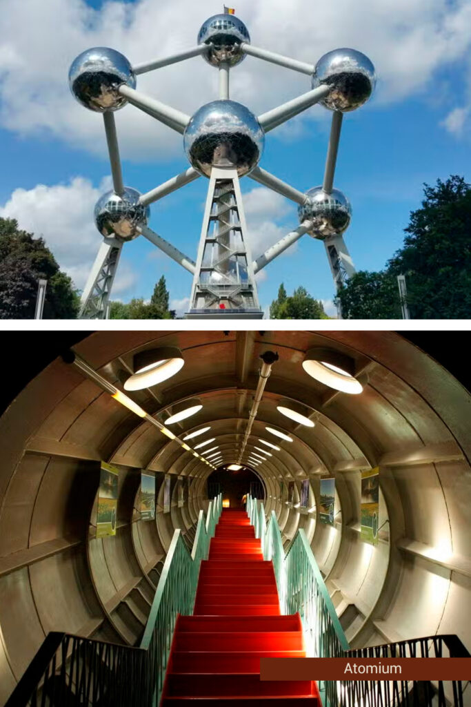 Uno de los símbolos más representativos de la ciudad es el Atomium, esta estructura futurista de 102 metros representa una molécula de hierro que fue construida para una exposición en 1958 y cuenta con exposiciones dedicadas a la historia de este símbolo, exposiciones temporales y un restaurante panorámico.