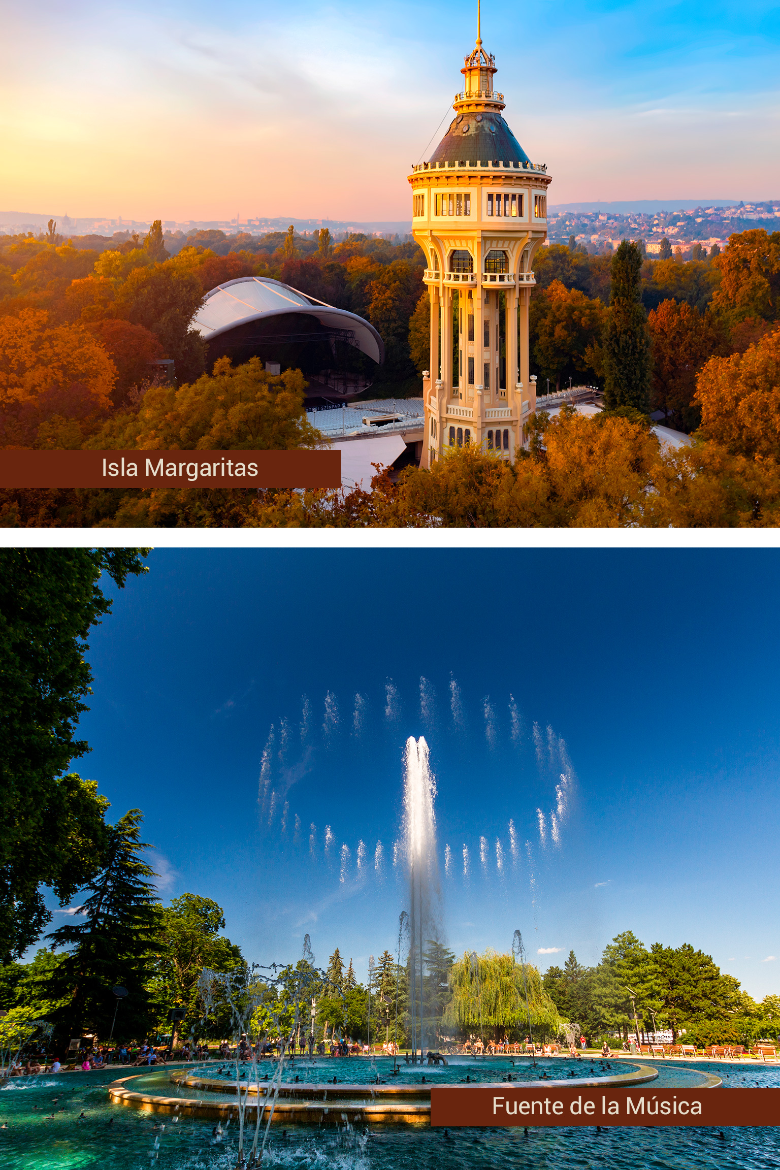 Extiende tu visita a uno de los puntos más encantadores de la ciudad: la Isla Margarita, un oasis en medio del río Danubio que tiene 2,5 km de largo y es perfecto para alejarse del bullicio de la ciudad y relajarse en compañía de la naturaleza. En ella hay un pequeño jardín japonés con un estanque termal, un pequeño zoo que resguarda aves acuáticas y otros animales, alquiler de bicicletas y cochecitos eléctricos, baños termales, un teatro al aire libre, recintos deportivos, monumentos históricos y la famosa e icónica Fuente de la Música, una fuente protegida por la UNESCO que ofrece espectáculos de luces con música y agua. Para acceder a la isla, hay que hacerlo por el Puente Margaret y el Puente Arpard o a través de las paradas cercanas de tranvía o autobús.