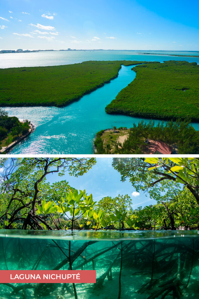 Si no desean ir tan lejos, Cancún tiene un lugar que no es tan conocido como se merece: la Laguna Nichupté. Se trata de un sistema de siete lagunas que mide alrededor de tres mil hectáreas y en los cuales pueden disfrutar de paseos en barco, visitar sus manglares, avistar diferentes especies como cocodrilos, ranas leopardo, tortugas e iguanas, practicar canotaje, recorrer la laguna en una moto acuática y visitar la Laguna del Amor, una opción recomendada para las parejas, ya que ofrece un ambiente íntimo rodeado de hermosos paisajes, sobre todo con su piscina natural en forma de corazón, por lo que si estás pensando en pedirle matrimonio a tu pareja, este es el lugar indicado para hacer esa propuesta tan especial.