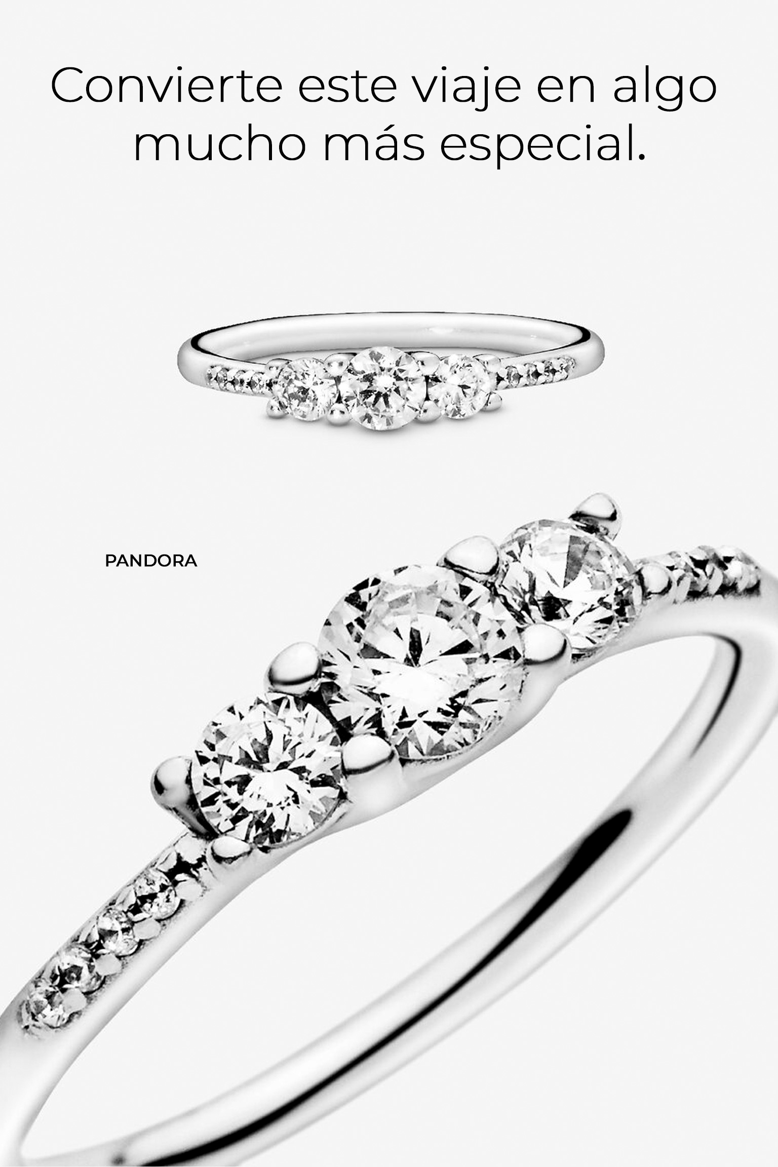 Convierte este viaje en algo mucho más especial para ti y tu pareja con el anillo de promesa de plata esterlina con tres piedras transparentes. Este diseño clásico lo adornan estas circonitas cúbicas de talla brillante que están redondeadas con pequeñas piedras brillantes. Su acabado es a mano y es el modelo perfecto para esta ocasión tan importante. Consíguelo en Pandora.
