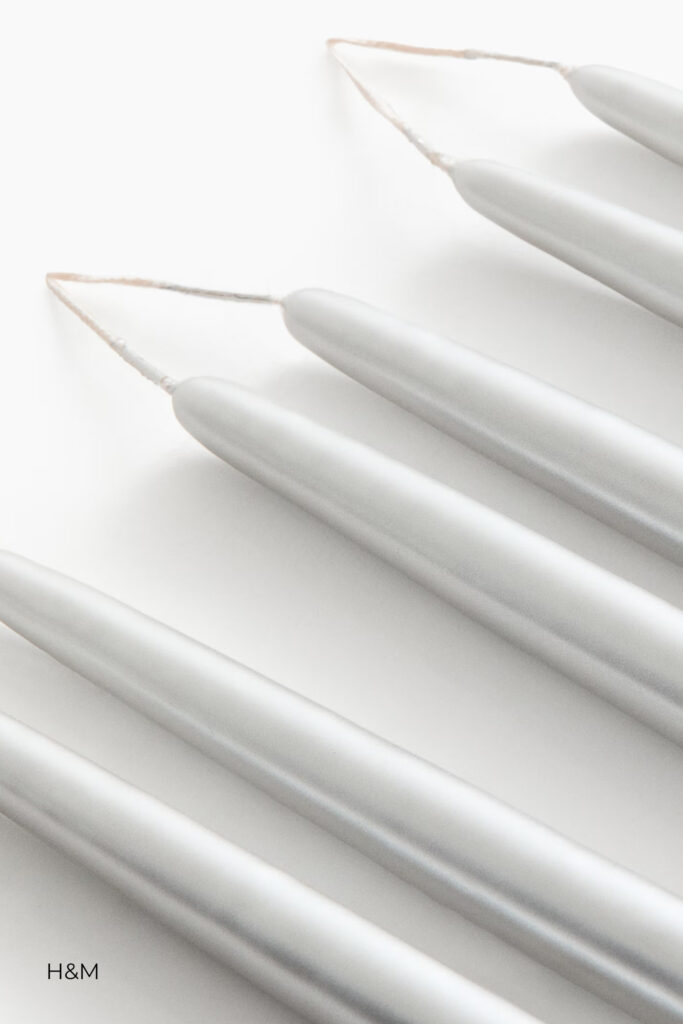 Las velas son un artículo imprescindible para celebrar la Navidad debido a su simbolismo de luz y esperanza. No solo se usan en coronas de adviento, también son casi obligatorias para una decoración que aporte elegancia y un ambiente acogedor. Te recomendamos el pack de seis velas metálicas de H&M Home. El color plata es ideal sobre todo si tu ornamentación es estilo ártico chic. Puedes combinarlas con más velas doradas o blancas para aportar un toque de lujo.