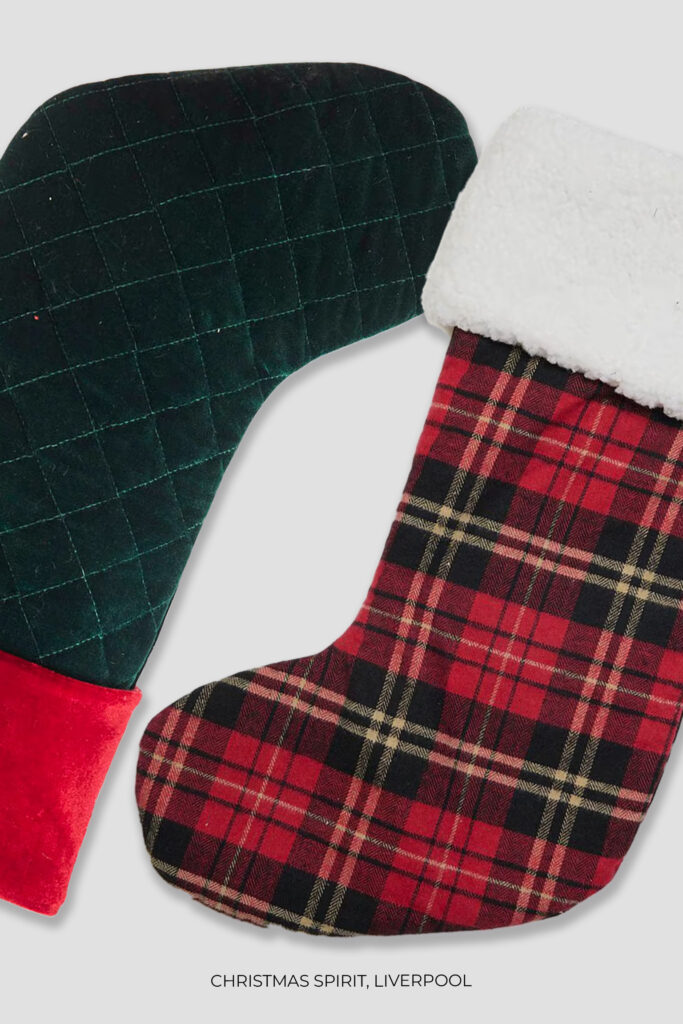 Siguiendo la tendencia, adorna el espacio donde recibirás los regalos con botas navideñas que tengan el detalle del tejido clave de la tendencia como los diseños de Christmas Spirit de Liverpool.