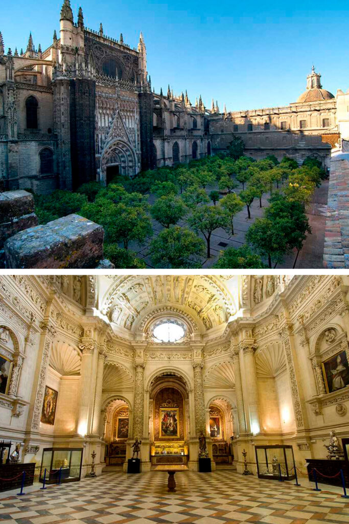 Considerada como uno de los recintos religiosos más bonitos e impresionantes del mundo, la Catedral de Sevilla, con su estilo gótico, te asombrará por ser de los templos más grandes y por resguardar una enorme colección de arte en su interior. Los inicios de su edificación datan desde el año 1401 y sus muros están decorados por frescos de importantes pintores, como El Greco y Francisco de Goya, y de hermosos vitrales que van desde el siglo XIV hasta el siglo XX, en los que destacan otros grandes artistas de la época gótica como Arnao de Flandes, Enrique Alemán y Vicente Menardo. Sin embargo, su obra más importante es el retablo mayor, un recinto gótico compuesto de 40 escenas talladas que plasman la vida de Cristo. La Catedral se conforma de cinco naves, la principal tiene una altura de 36 m, siendo la más alta, pero no es solo su tamaño y colección lo único que resalta, su belleza arquitectónica también es respaldada por sus techos abovedados repletos de dibujos, orfebrería y exquisita iconografía.
