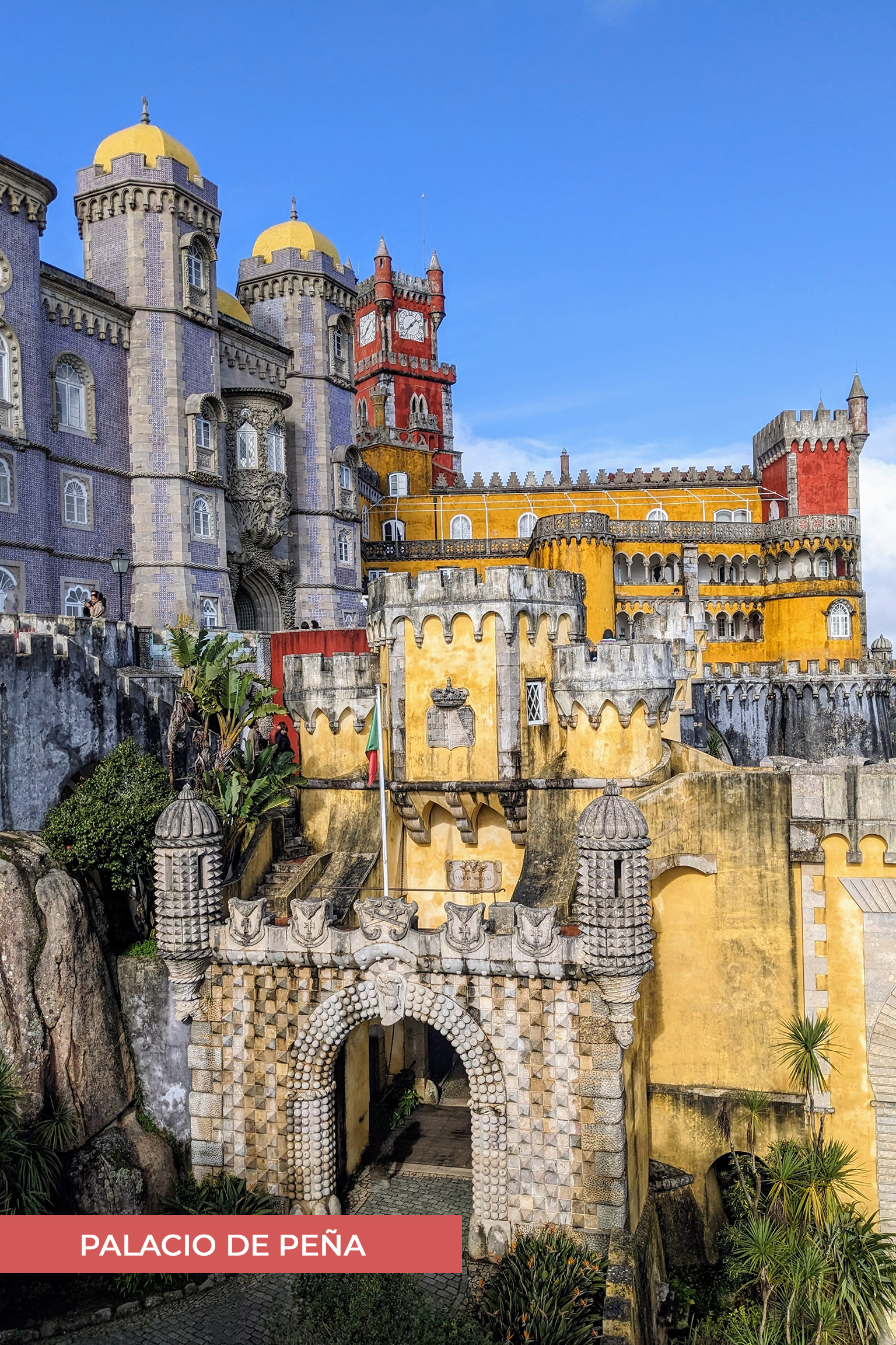 Comiencen su aventura visitando una de las grandes atracciones de Sintra: el Palacio Nacional de la Peña o Palacio da Pena. Esta joya de la arquitectura data del siglo XIX albergó a la familia real portuguesa y se asienta sobre la colina más alta de la ciudad. El Palacio mezcla varios estilos arquitectónicos como el neogótico, el neoislámico y el neorenacentista, los cuales se combinan con alemas ornamentadas, estatuas y espacios pintados con colores muy llamativos. En su interior resguarda una capilla, numerosas habitaciones, el comedor, cocina y salones amueblados con mobiliario de la época. También pueden explorar el exterior del Palacio, ya que hay un parque que lo rodea con un jardín botánico repleto de árboles provenientes de muchas partes del mundo así como estanques y lagos pequeños que le dan un toque más encantador y las mejores vistas de la ciudad, por lo que si estás pensando en pedirle matrimonio a tu acompañante, este es el sitio perfecto para ello.